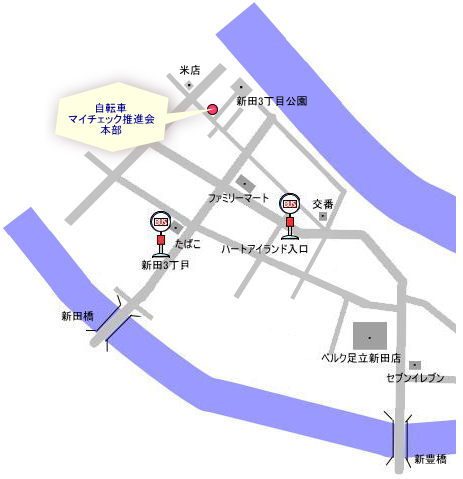 ※バスの場合、新田二丁目下車でも新田3丁目公園を目指してお越しください。