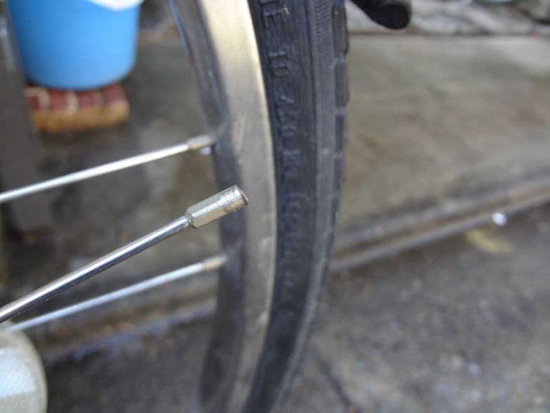 ニップルが1本折れている状態でユーザーは使用していました。ステンレスリムでしっかりした車輪のために、異常に気付かなかったようです。他の箇所に異常がなかったので、ニップル交換とスポークの張力を調整しました。